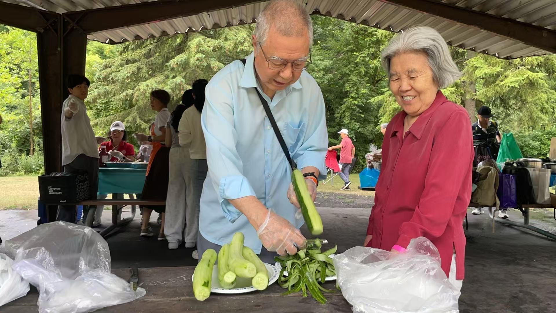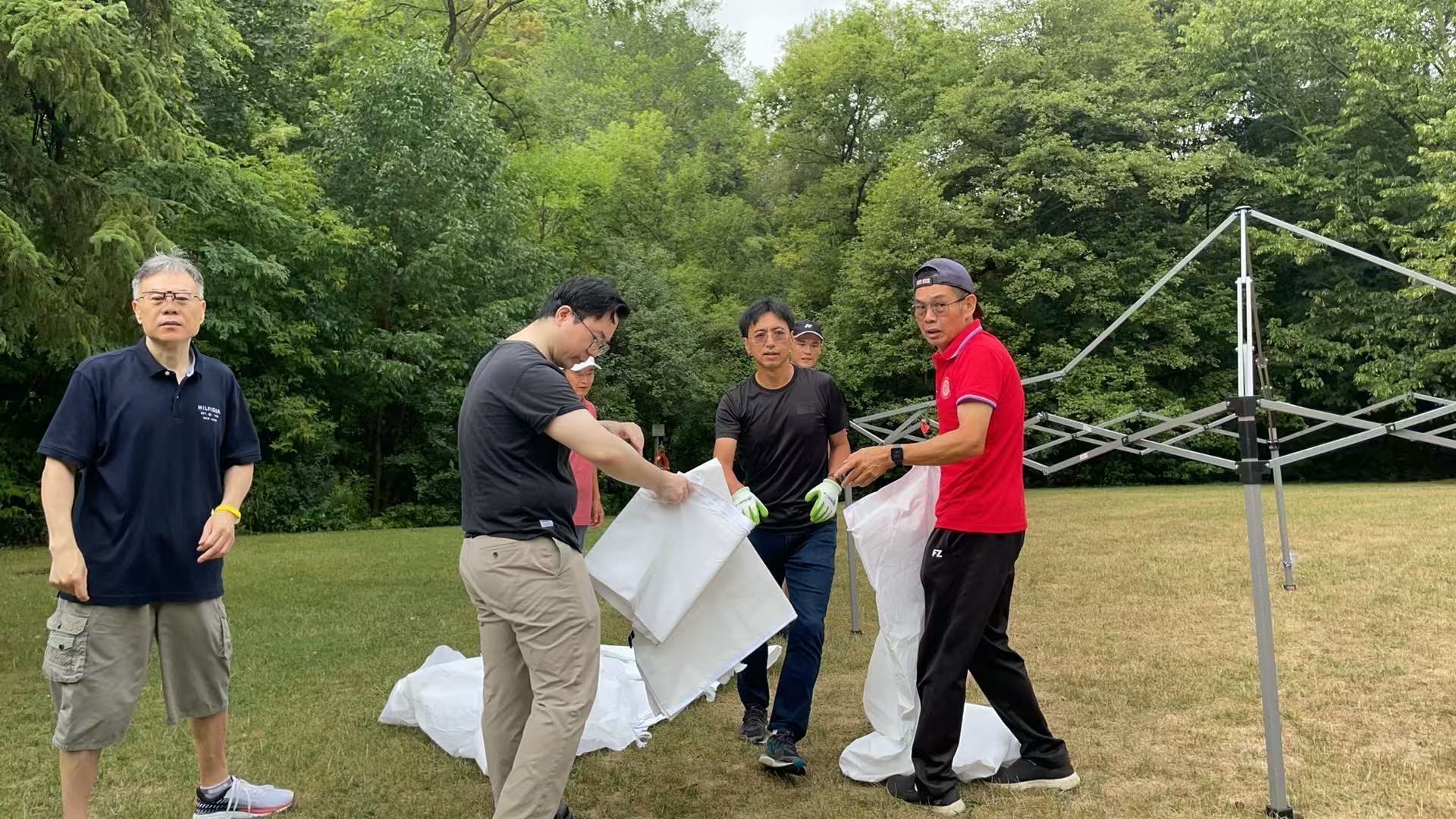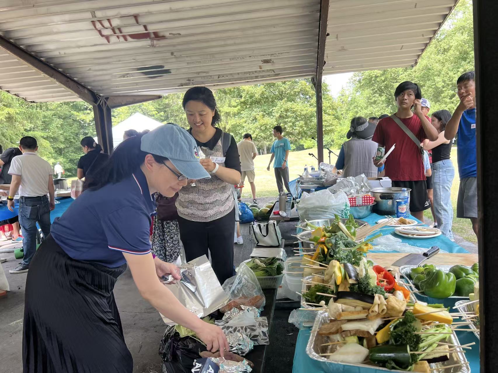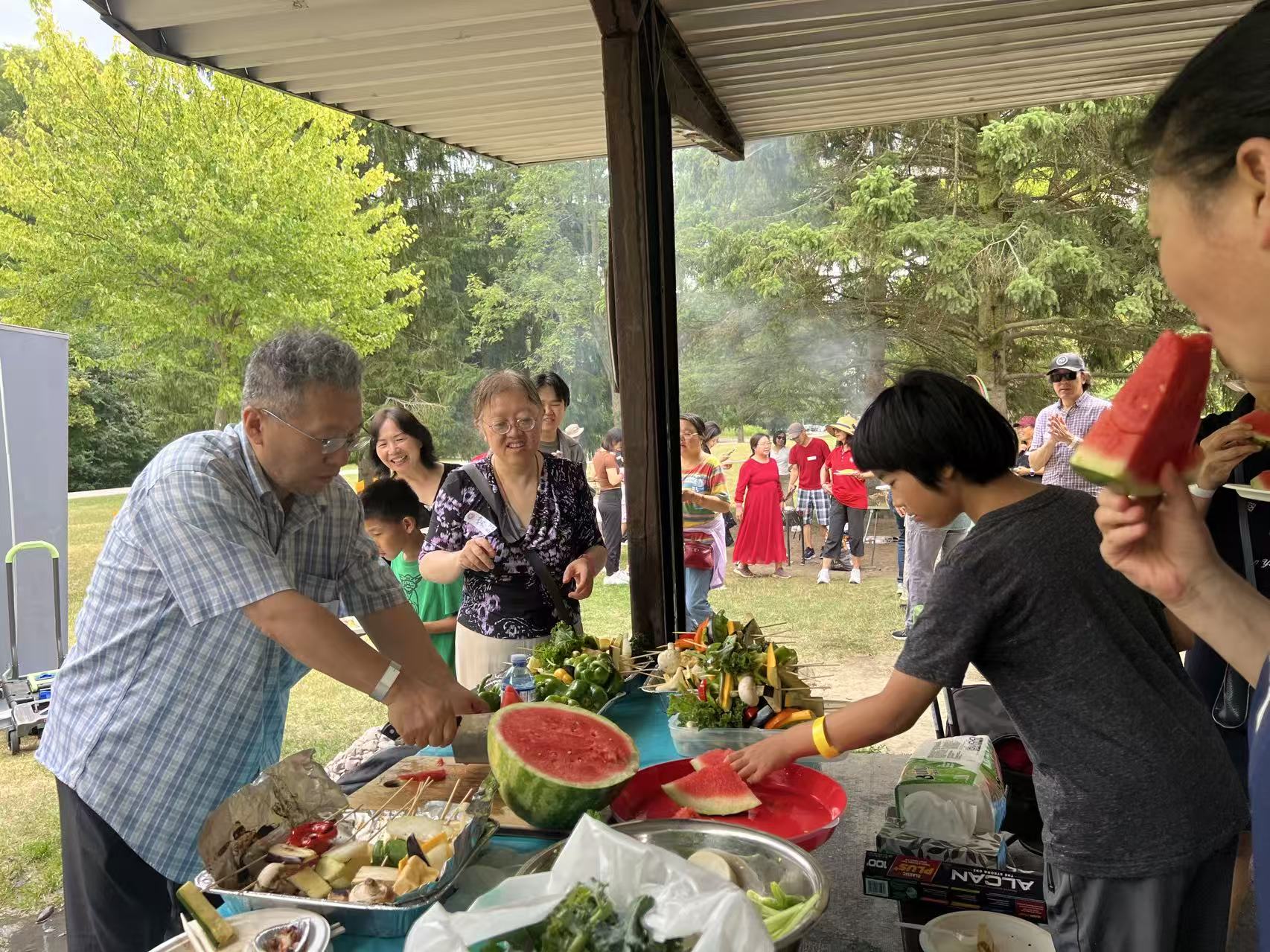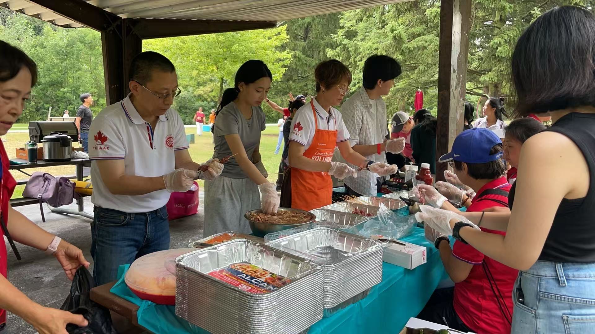 正午的阳光正好,会长王清山的致辞被一阵突如其来的雨声打断。”未名湖的雨跨越重洋追着我们到多伦多了!”一位校友大声笑道。雨滴在烤架上跳跃,蒸腾起带着肉香的水汽,将这场雨化作了一场别开生面的”调味”。不过片刻,雨过天晴,被洗涤过的空气中,炭火的焦香与青草的清新奇妙地交融,构成这个夏日最独特的记忆。