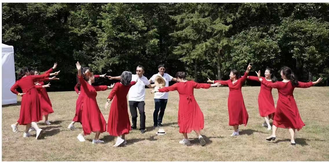 艺术的气息在草坪上流淌。合唱团的歌声掠过湖面,惊起几只水鸟;舞蹈队的妙曼舞姿惹得成群的海鸥在头顶处翻飞媲美;李玮校友表演的陈氏太极刚柔并济、如诗如画。最热闹的当属草坪KTV,从《燕园情》到当下的流行曲,和西洋的咏叹调,不同的年代,同样的深情。而一旁的瑜伽体验区,几位校友在杜晓红校友的指导下舒展身体,仿佛在与遥远的博雅塔隔空对话。